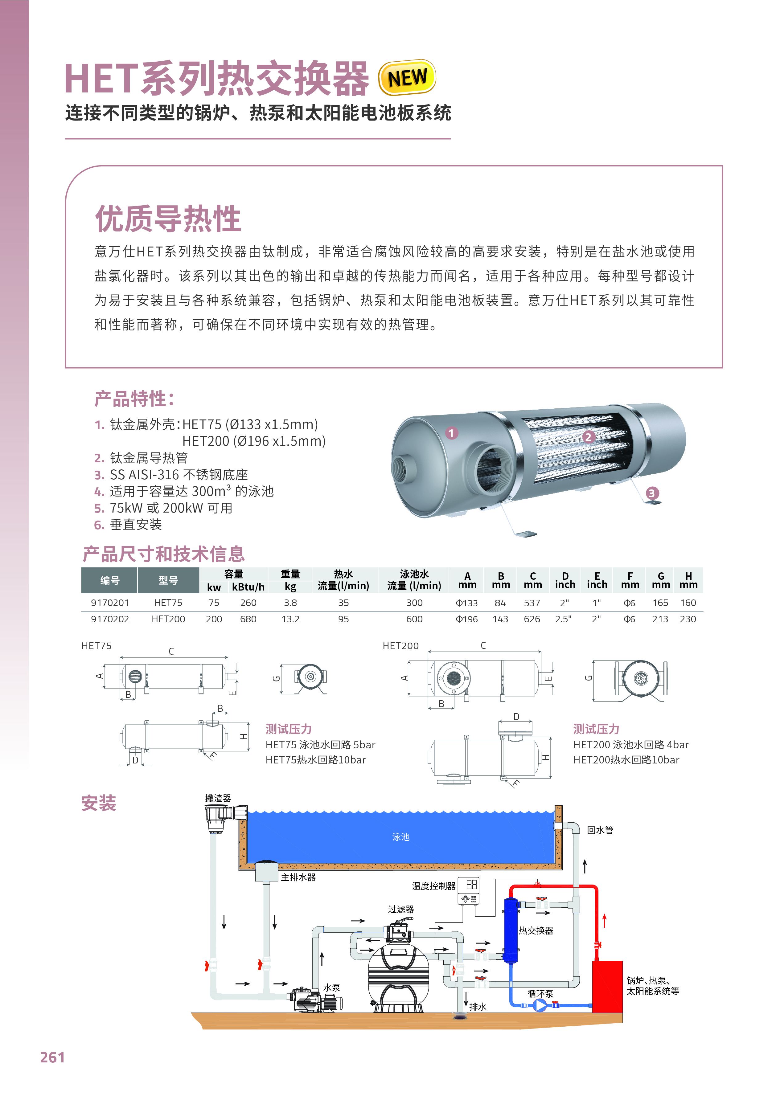 競技池意萬仕HET系列熱交換器由鈦制成,?常適合腐蝕風(fēng)險較?的?要求安裝,特別是在鹽水池或使用 鹽氯化器時。該系列以其出色的輸出和卓越的傳熱能力而聞名,適用于各種應(yīng)用。每種型號都設(shè)計 為易于安裝且與各種系統(tǒng)兼容,包括鍋爐、熱泵和太陽能電池板裝置。意萬仕HET系列以其可靠性 和性能而著稱,可確保在不同環(huán)境中實現(xiàn)有效的熱管理。