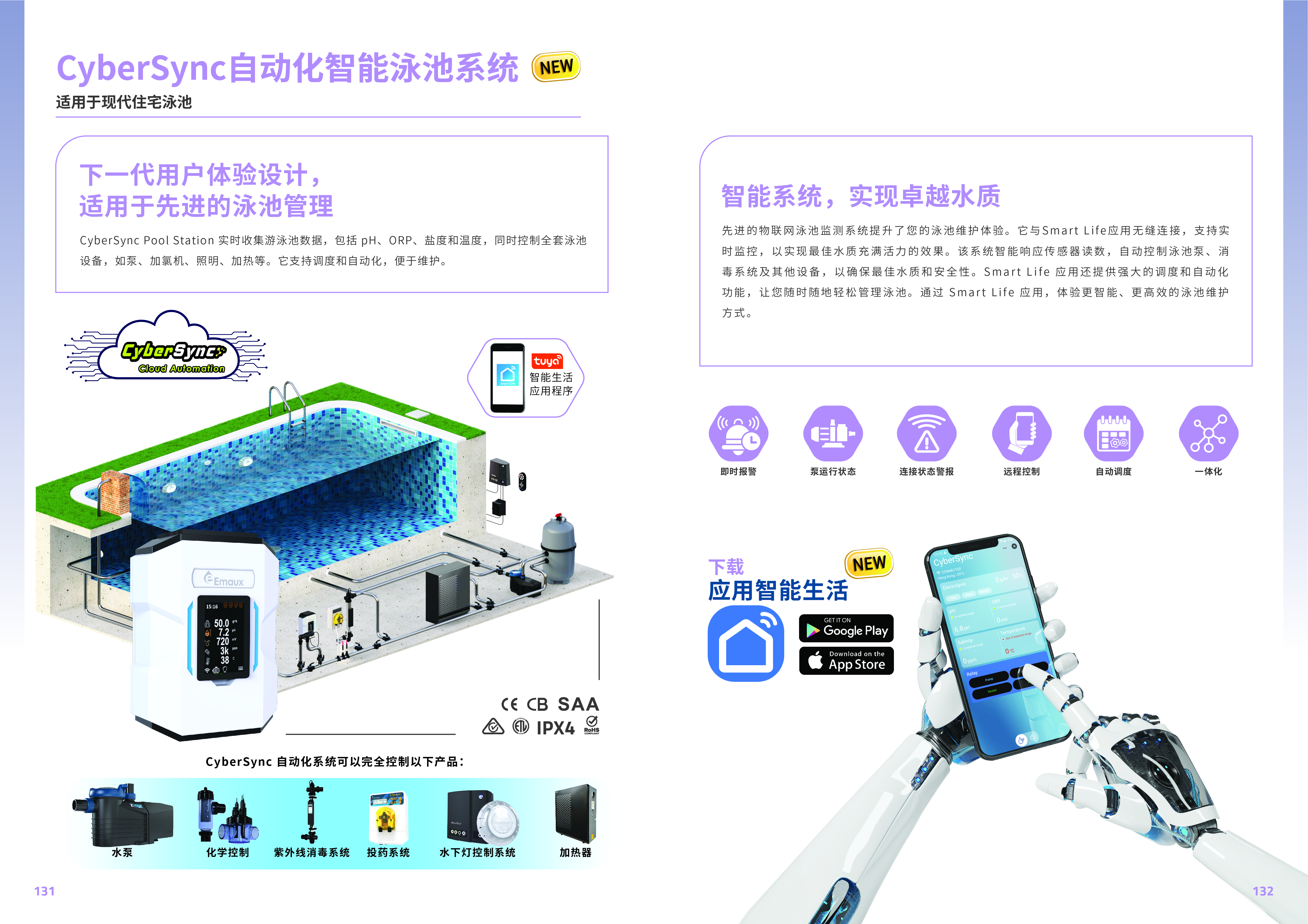 CyberSync Pool Station 實(shí)時(shí)收集游泳池?cái)?shù)據(jù),包括 pH、ORP、鹽度和溫度,同時(shí)控制全套泳池 設(shè)備,如泵、加氯機(jī)、照明、加熱等。它支持調(diào)度和自動(dòng)化,便于維護(hù)。