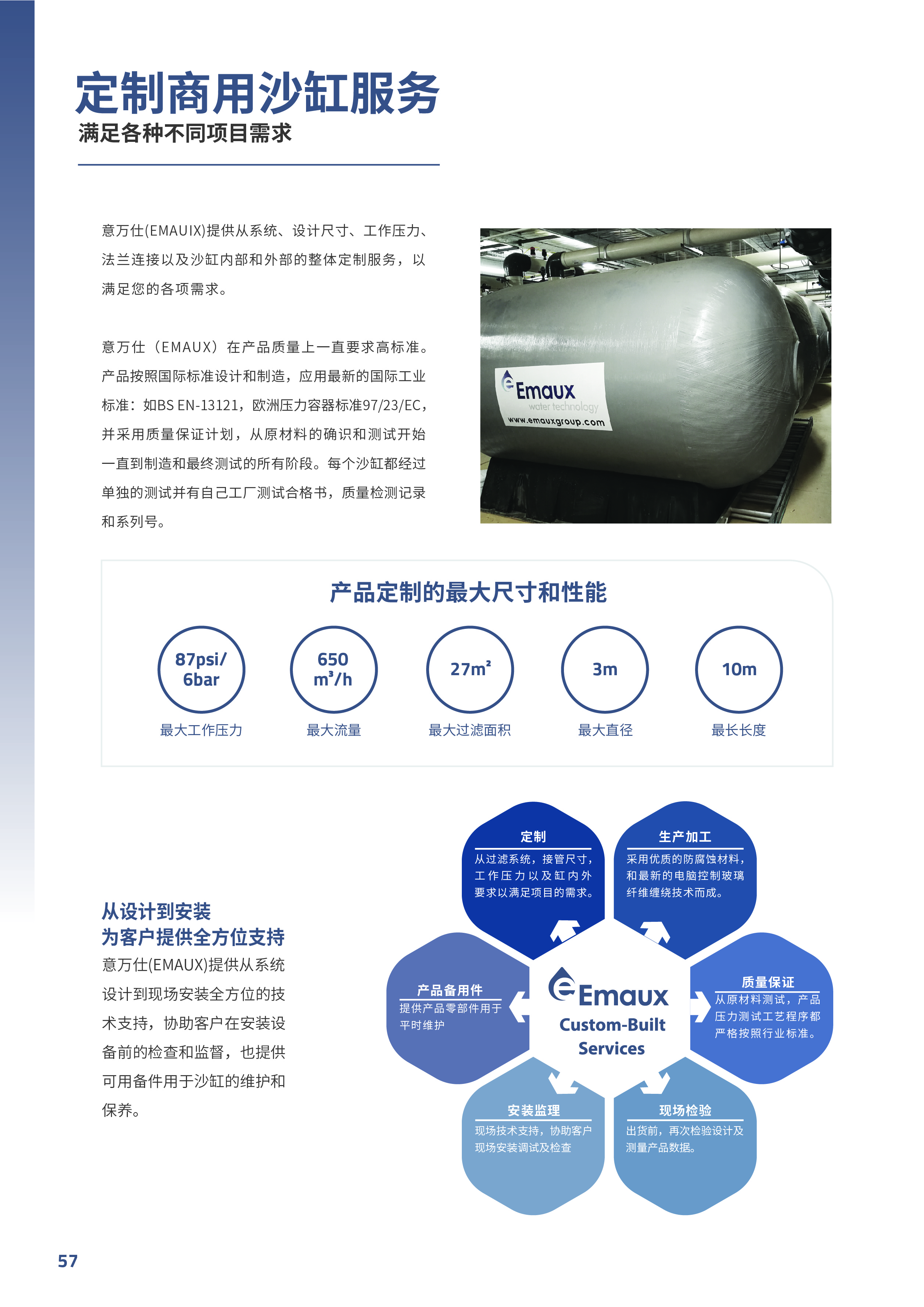 競(jìng)技池意萬(wàn)仕(EMAUX)提供從系統(tǒng) 設(shè)計(jì)到現(xiàn)場(chǎng)安裝全方位的技 術(shù)支持,協(xié)助客戶在安裝設(shè) 備前的檢查和監(jiān)督,也提供 可用備件用于沙缸的維護(hù)和 保養(yǎng)。
