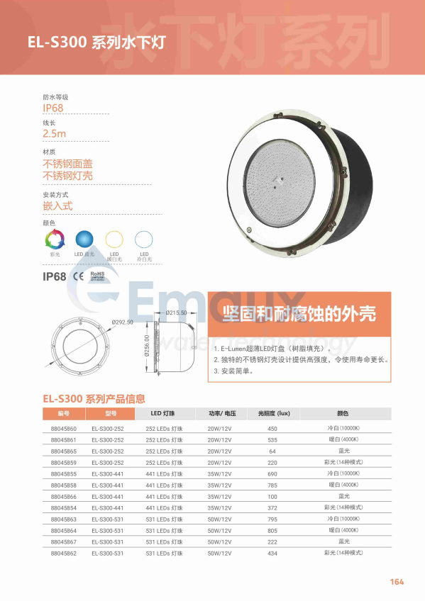 競技池1.E-Lumen超薄LED燈盤(樹脂填充) 2.獨特的不銹鋼燈殼設(shè)計提供高強(qiáng)度,令使用壽命更長 3.安裝簡單
