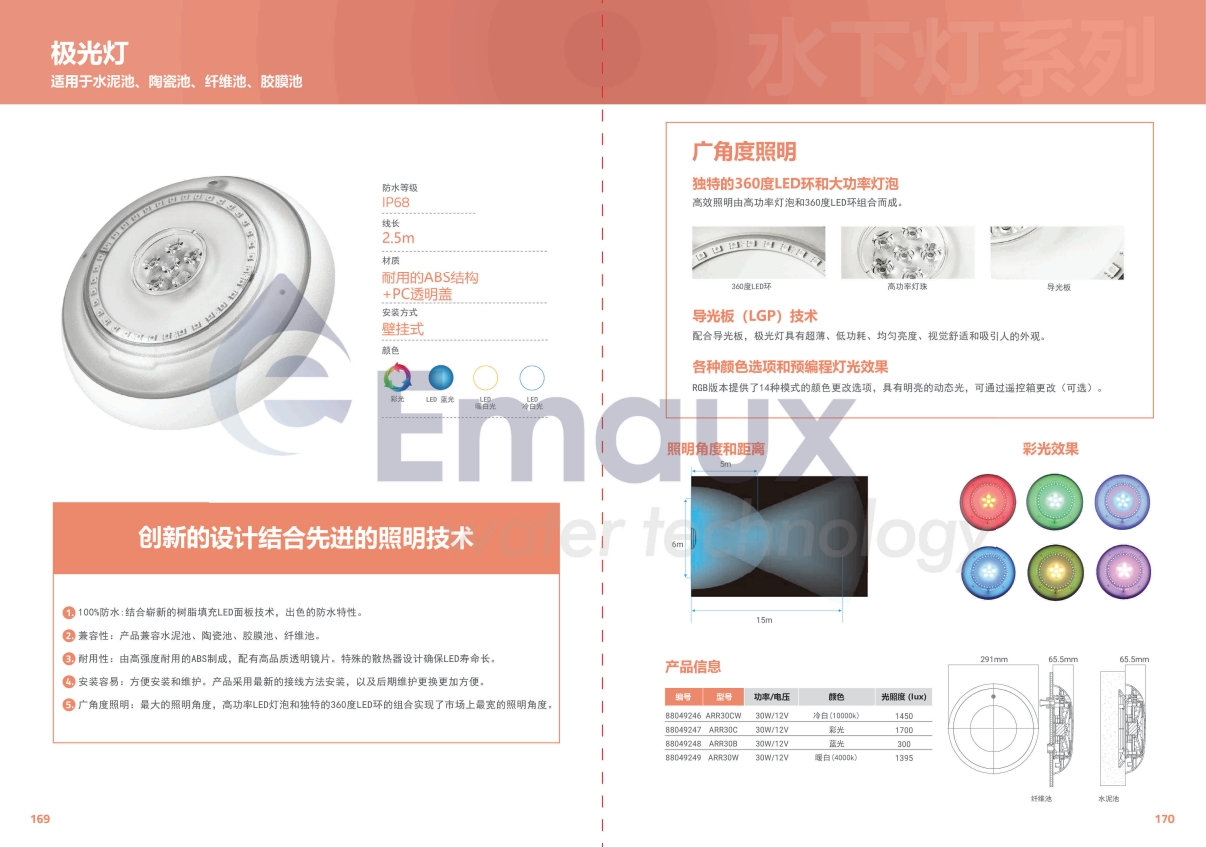 競(jìng)技池1. 100%防水:結(jié)合嶄新的樹(shù)脂填充LED面板技術(shù),出色的防水特性。 2. 兼容性:產(chǎn)品兼容水泥池、陶瓷池、膠膜池、纖維池 3. 耐用性:由高強(qiáng)度耐用的ABS制成,配有高品質(zhì)透明鏡片。特殊的散熱器設(shè)計(jì)確保LED壽命長(zhǎng) 4. 安裝容易:方便安裝和維護(hù)。產(chǎn)品采用最新的接線(xiàn)方法安裝以及后期維護(hù)更換更加方便 5. 廣角度照明:最大的照明角度高功率LED燈泡和獨(dú)特的360度LED環(huán)的組合實(shí)現(xiàn)了市場(chǎng)上最寬的照明角度
