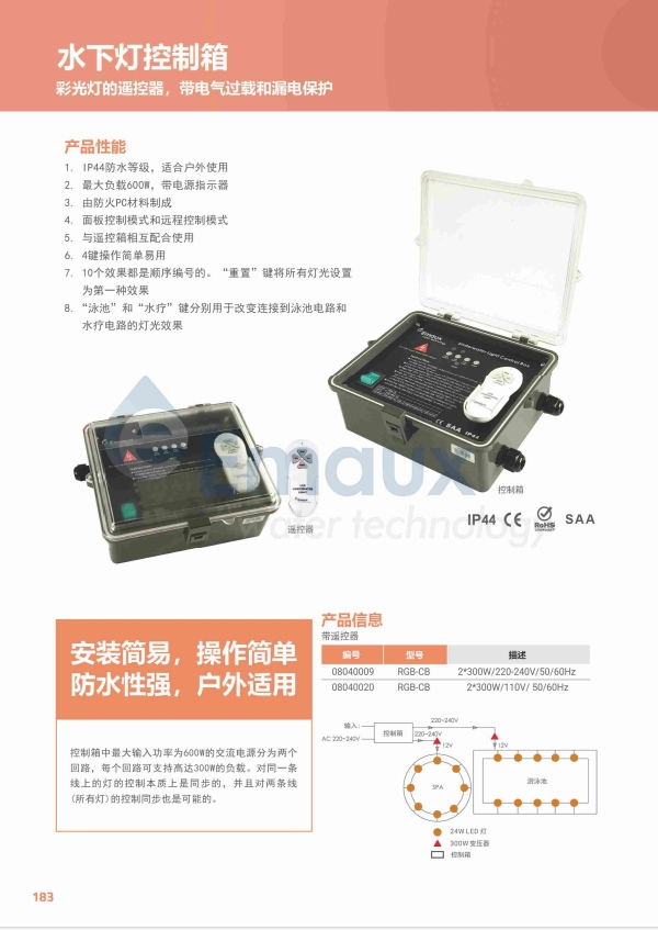 競(jìng)技池控制箱中最大輸入功率為600W的交流電源分為兩個(gè)回路,每個(gè)回路可支持高達(dá)300W的負(fù)載。對(duì)同一條線上的燈的控制本質(zhì)上是同步的,并且對(duì)兩條線(所有燈)的控制同步也是可能的。