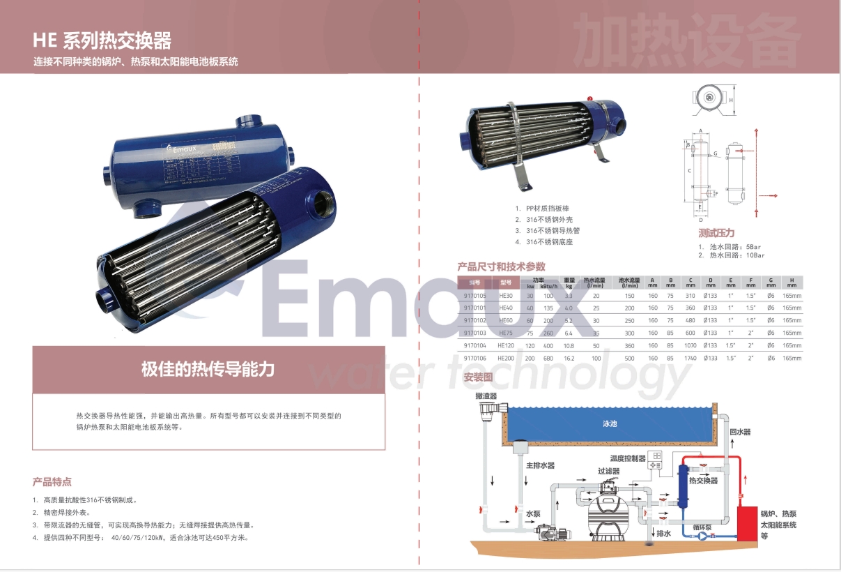 競(jìng)技池熱交換器導(dǎo)熱性能強(qiáng),并能輸出高熱量。所有型號(hào)都可以安裝并連接到不同類型的鍋爐熱泵和太陽(yáng)能電池板系統(tǒng)等。