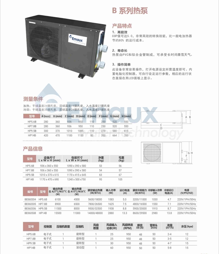 COP值可達5.0,非常高效的轉換效能,比一般電加熱器節(jié)約80% 的運行成本。