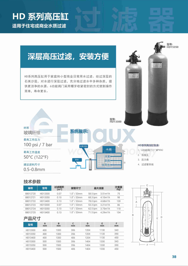 | EMAUX - "HD" SERIES Deep Bed Filter | |||