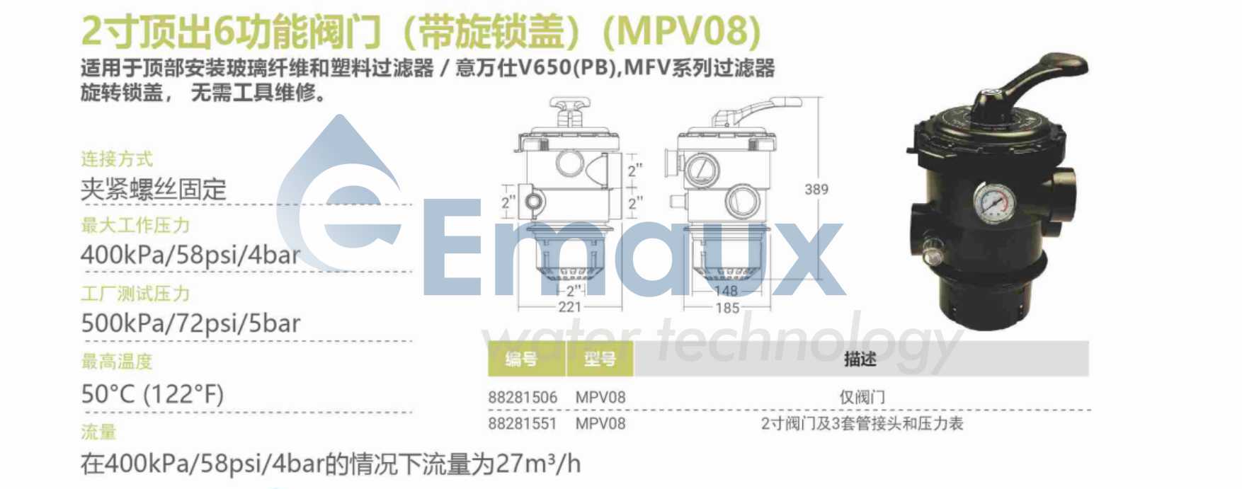 | EMAUX - 2" Clamp Type Multiport Valve for "Filter Maxx" | |||