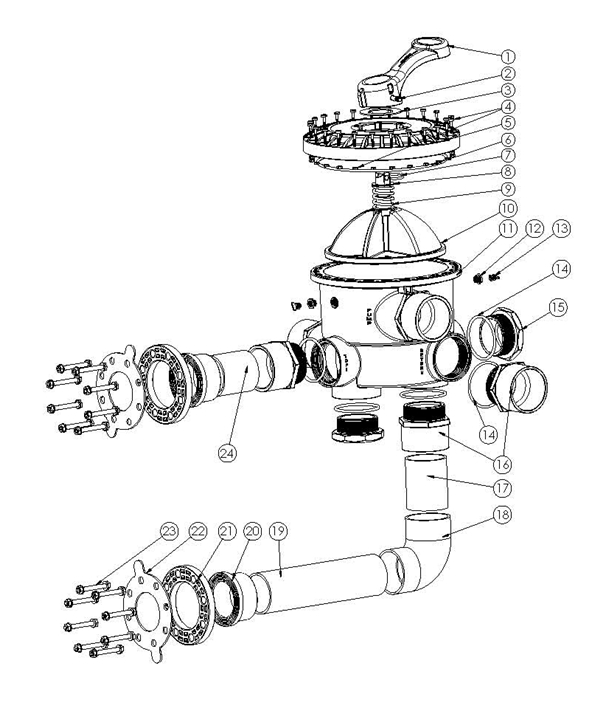 | Product Name : 4"SIDEMOUNT 6-WAY VALVEWITH PIPING KIT(4寸側(cè)出連缸缸頭) | |||