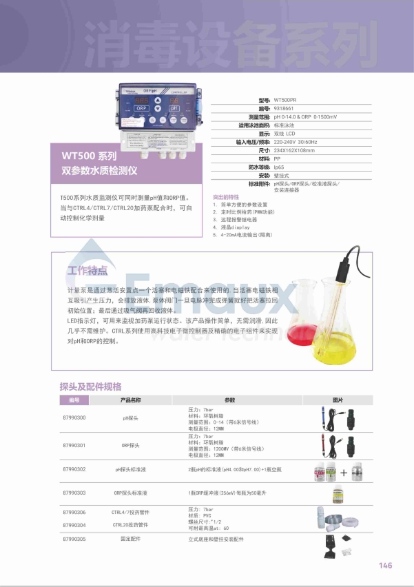 競技池T500系列水質(zhì)監(jiān)測儀可同時(shí)測量pH值和ORP值。 當(dāng)與CTRL4/CTRL7/CTRL20加藥泵配合時(shí),可自動(dòng)控制化學(xué)劑量