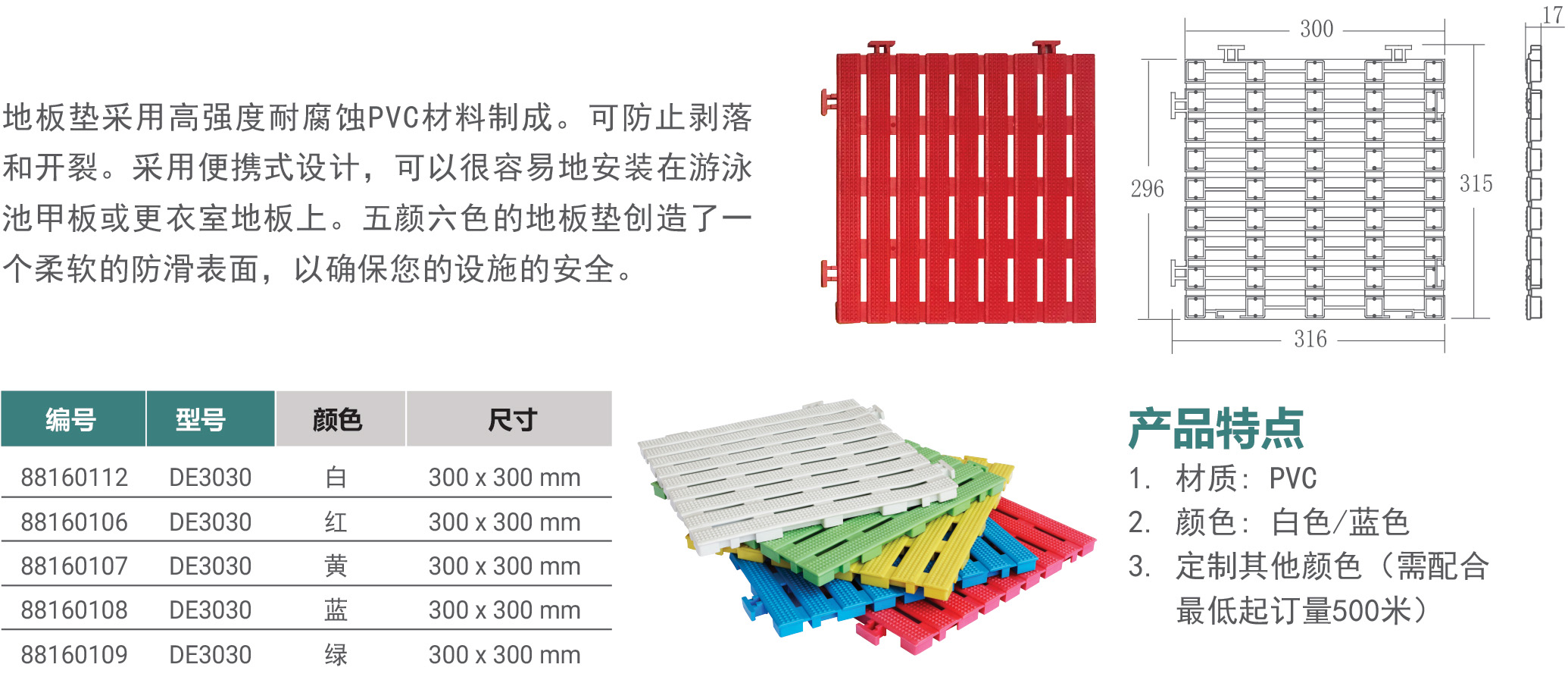 您的位置:首頁>產(chǎn)品概覽>泳池格柵>地板墊(DE30系列)