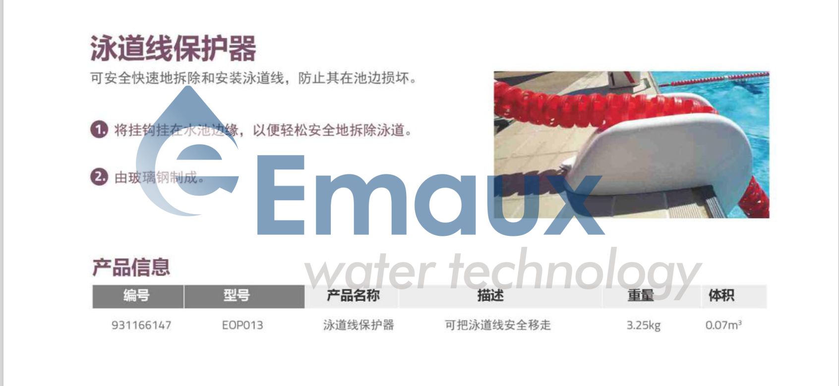 競技池1. 將掛鉤掛在水池邊緣,以便輕松安全地拆除泳道。